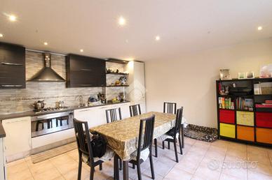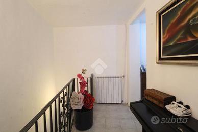 Casa semi indipendente disposta su due livelli in zona centrale. L'ingresso è living sul soggiorno da cui si accede alla cucina abitabile, con camino a legna, e tramite scala in muratura alla zona notte. Dalla zona giorno si accede al cortile privato. Al primo piano piano troviamo due camere da letto con accesso al balcone. Il bagno al piano terra è con doccia ed è dotato di aerazione forzata, al primo piano il secondo bagno, con finestra è da ultimare. L'immobile è parzialmente ristrutturato. La lavanderia al primo piano completa la funzionalità della casa.