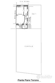 Attualmente la proprietà è suddivisa in due alloggi indipendenti, soluzione ideale sia per uso investimento, con la possibilità di metterla a reddito, sia per ospitare due nuclei familiari. Sono presenti due ingressi separati: uno direttamente dalla strada, con accesso al piano terra, e uno dal cortile, da cui tramite scala si raggiunge il primo piano.