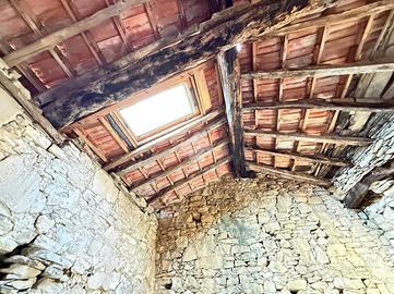 La proprietà è composta di una grande cantina in piano terreno con le tipiche arcate e le volte in pietra dei borghi liguri connessa alla parte abitativa situata al piano primo da 3 vani con finestre con vista sulla vallata ed in piano secondo altre 2 stanze.