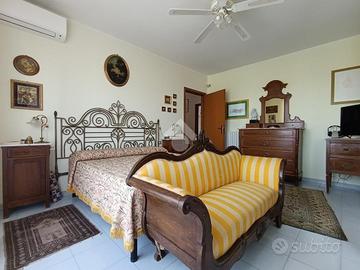 Una corte esterna privata di circa 300 mq introduce la proprietà, composta al piano rialzato da una cucina abitabile con camino, un luminoso soggiorno con uscita sul giardino, un ampio balcone abitabile a servizio di entrambe le stanze ed un bagno. Tramite una scalinata interna si raggiunge il piano primo, costituito da tre spaziose camere da letto ed un bagno con vasca e doccia. Completa il piano un balcone con suggestiva vista mare. Al piano secondo la soluzione dispone di due ulteriori vani e di un bagno con doccia. Completano l'immobile, al piano seminterrato, una rifinita taverna con servizio, cantina, ripostiglio ed un ampio garage, collegati internamente tramite una scalinata.