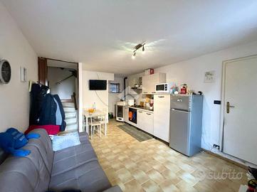Al piano terra troviamo un soggiorno con angolo cottura e pratico ripostiglio sottoscala.