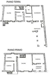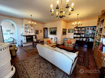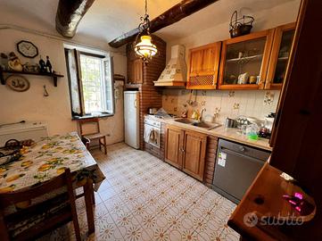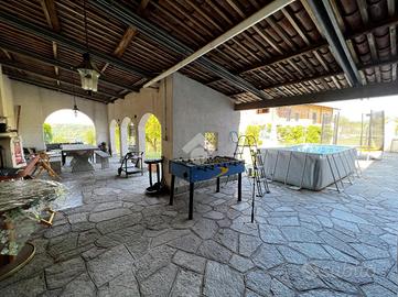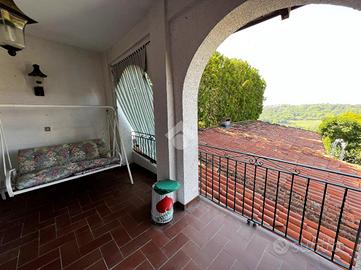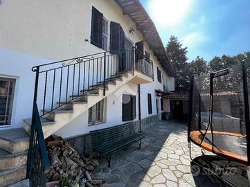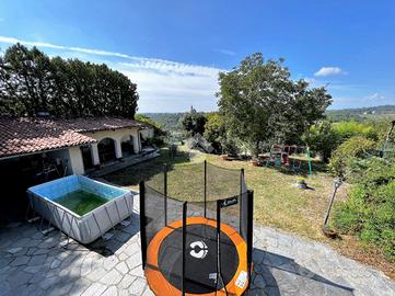 La casa è posta nella frazione San Pietro, località panoramica tra Piovà Massaia, Cocconato e Montiglio Monferrato. I principali servizi sono a cinque minuti di auto. La posizione è collinare. Il giardino privato è di circa 600 mq e comprende un comodo porticato di circa 60 mq. Il piano terra è composto da un ampio salone, una cucina abitabile, un bagno dotato di doccia e da una cantina. Il piano primo dove è ubicata la zona notte è accessibile da una scala interna in marmo e da una scala esterna in muratura. L'ampio salone al piano superiore è dotato di camino e stufa di Castellamonte. Il piano è completato da altre tre camere da letto e da un comodo terrazzo coperto. Lo stato conservativo è in buone condizioni, poiché la ristrutturazione del fabbricato è stata fatta negli anni 90. I materiali interni sono in buono stato. I serramenti esterni sono in legno coibentato con il doppio vetro e gli infissi interni sono in legno. Il riscaldamento è alimentato a gpl attraverso i radiatori. E' compreso un terreno agricolo antistante la casa. È possibile usufruire di importanti detrazioni per i lavori di ristrutturazione.
