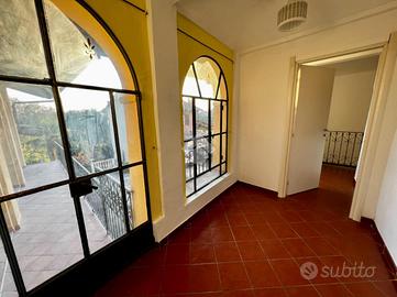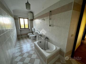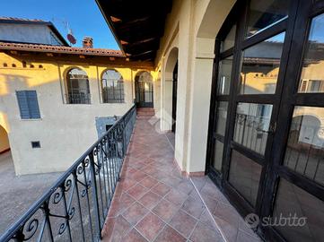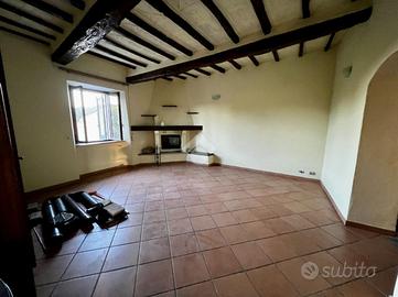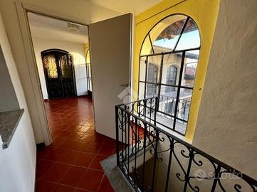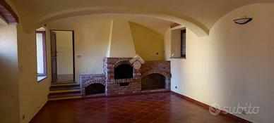 La casa si trova a pochi passi dal centro di Piovà Massaia dove vi è il panettiere, il bar e vicino alla fermata dell'autobus. L'immobile è una porzione di un antico cascinale piemontese ed è stato finito di ristrutturare nel 2005 e si dispone su due livelli ed esposto su due lati. L'ingresso tramite portone, conduce al cortile e al giardino privato. Il piano terra dell'abitazione è composto da una camera e da una taverna dotata di camino a legna. La scala interna in pietra di luserna porta al piano superiore. Le due camere da letto sono di generosa metratura. Completa la zona notte il primo bagno finestrato dotato di vasca. Sullo stesso piano sono presenti il soggiorno con angolo cottura, caratterizzato da luminose arcate, e il secondo bagno dotato di doccia. Attraverso il disimpegno si può uscire sul balcone che gode di una piacevole vista sul paese. I pavimenti sono tutti in cotto tranne nei bagni dove le piastrelle sono in ceramica. La casa include una cantina di circa 50 mq. I serramenti esterni sono in legno con il doppio vetro. Il riscaldamento è autonomo alimentato da stufe a legna, ma vi è la predisposizione dell'allaccio a metano, a cura e spesa dell'inquilino. Il cortile di proprietà è caratterizzato anche dalla presenza di un'ampia tettoia, utilizzabile come due posti auto coperti.
