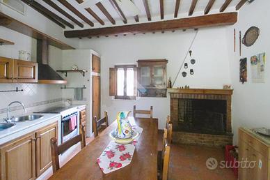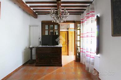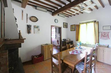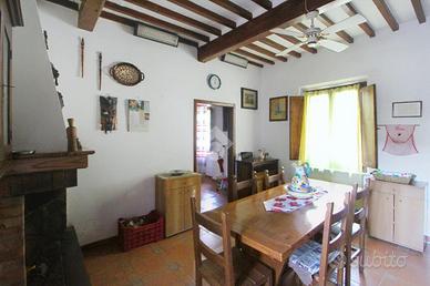 Al piano terra l'ingresso conduce alla zona giorno, composta dal soggiorno separato dalla cucina abitabile dotata di camino. Completano il livello un bagno finestrato e un comodo ripostiglio con zona lavanderia.
