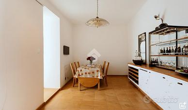 L'ingresso al piano terra conduce alla zona giorno composta dal soggiorno che rimane separato dalla sala da pranzo con cucinotto. Completa il piano il bagno finestrato e il comodo ripostiglio sottoscala.