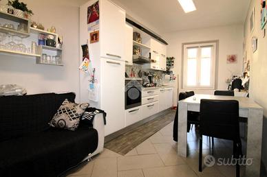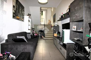 Al piano terra, l'ingresso accoglie in un soggiorno, con un pratico sottoscala attrezzato per la lavatrice.