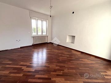 Al primo piano si sviluppa l'abitazione principale, composta da una luminosa zona giorno con cucina a vista e accesso diretto a un ampio terrazzo, ideale per pranzi all'aperto o momenti di relax. La zona notte comprende due camere da letto di ottima dimensione, entrambe rifinite in parquet, e un bagno finestrato.
