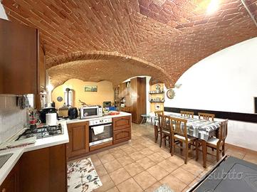 L'ingresso si apre su un accogliente disimpegno che conduce alla zona giorno al piano terra, un ambiente davvero caratteristico: gli spazi sono infatti impreziositi da splendide volte a mattoncini a vista, che donano calore e un tocco autentico allo stile della casa.