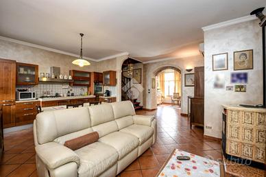 La restante parte del piano primo ed il piano secondo ospitano l'abitazione principale dei proprietari che risulta essere così composta: ampio ingresso, soggiorno con cucina a vista e bagno finestrato al piano primo, salendo al piano secondo, troviamo un reparto notte dotato di quattro camere da letto di cui ben due ampie matrimoniali, la principale dotata di locale guardaroba e un secondo bagno anch'esso finestrato.