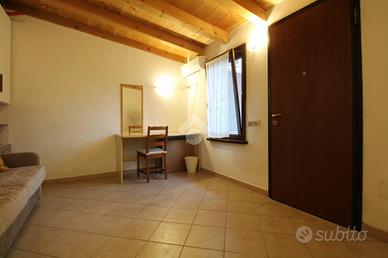 Si accede tramite vialetto privato che conduce direttamente alla porta d'ingresso. Internamente l'immobile si presenta con una disposizione funzionale e ben organizzata: entrando troviamo bagno finestrato con box doccia, comodo ripostiglio e due ampie camere matrimoniali.