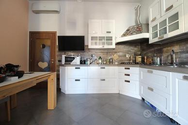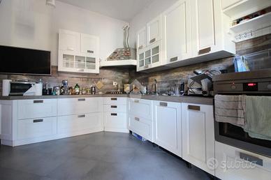 Sulla sinistra troviamo la cucina con un'ampia terrazza abitabile di oltre 20 mq perfetta per organizzare pranzi e cene in compagnia.