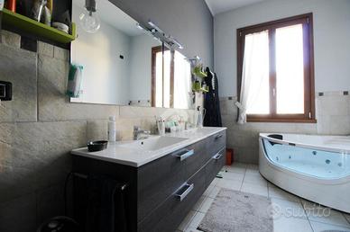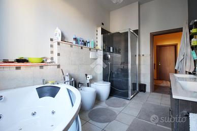 Conclude il piano un grande bagno finestrato con box doccia e vasca idromassaggio.
