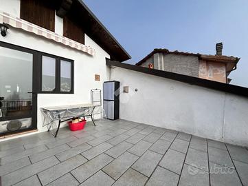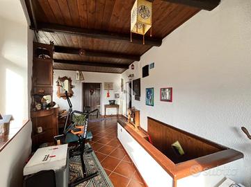 Al piano secondo, collegato con scala esterna, si sviluppa un luminoso soggiorno, con accesso diretto al terrazzo da cui godere di un'ottima vista panoramica, una pratica cucina, due camere da letto e un bagno dotato di doccia.