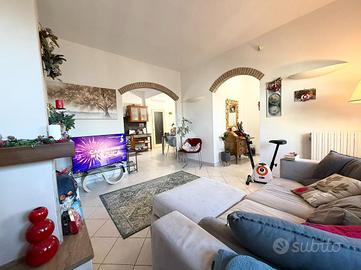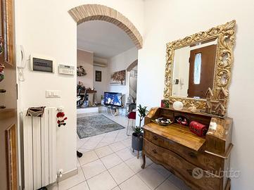 In contesto tranquillo e ben servito, proponiamo in vendita un appartamento al primo piano di una bifamiliare. L'ingresso si apre su una zona giorno ampia e luminosa, dove ad accoglierci troviamo un camino a legna per momenti di convivialità e relax, con accesso alla cucina e a un comodo ripostiglio. La zona notte è ben distribuita e comprende due camere matrimoniali e un bagno finestrato completo di vasca e box doccia.