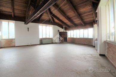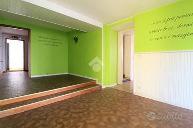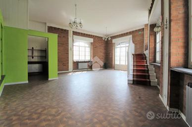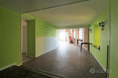 QUASSOLO: casa semindipendente di ampia metratura composta al piano terreno di ingresso, cucina, salone doppio, bagno e due locali ripostiglio. Tramite scala interna si accede al piano superiore adibito a zona notte e composto da cinque camere da letto, due bagni e ampio locale a nudo tetto con tetto a vista e con altezza minima di 2,35 mt e altezza massima 4,00 mt. Al piano più basso del fabbricato, collegato sempre tramite scala interna, sono presenti un ampio locale da poter utilizzare come taverna e già attrezzata con angolo bar, un locale deposito/dispensa, una caratteristica cantina, un wc, la lavanderia e la centrale termica.