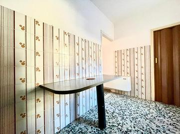 Al piano terra troviamo un luminoso soggiorno finestrato che conduce alla cucina semi-abitabile, completa di un bagno di servizio, realizzato nel 2004.