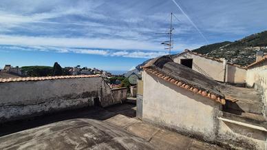 Da un lato si accede a un disimpegno con bagno e due ampie camere da letto; dall'altro lato si apre un luminoso soggiorno, altre due camere da letto, un cucinotto e un secondo bagno. Le camere e il soggiorno, sono impreziositi da eleganti volte a crociera, tipiche dell'architettura locale, che conferiscono unicità agli spazi. Dal ballatoio si accede a un comodo terrazzo a livello, dove una scala in ferro conduce al piano superiore, dove troviamo un sottotetto di circa 100 mq ( per la metà praticabile), due terrazzi panoramici con vista mozzafiato che spazia dal centro storico di Ravello fino al mare, e un pratico ripostiglio di 12 mq. L'immobile rappresente una soluzione rara e affascinante, ideale per essere adibita a struttura extra alberghiera di prestigio nel cuore della Costiera Amalfitana.