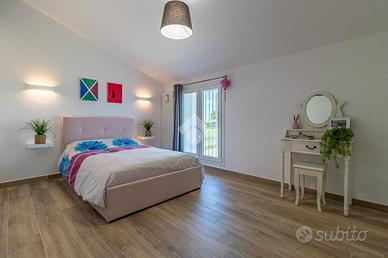 L'abitazione, di circa 175 mq, si sviluppa su due livelli ed è caratterizzata da un ingresso indipendente che conduce direttamente in un ampio e luminoso soggiorno, perfetto per accogliere familiari e amici con ripostiglio molto comodo, da adibirlo a vano guardaroba. Nella zona giorno è presente la spaziosa cucina abitabile, dove si può pranzare in totale comodità e serenità con affaccio nel giardino di proprietà e dove si può ammirare un fantastico tramonto grazie alla presenza delle ampie vedute. Sempre al piano terra troviamo la prima delle tre camere da letto, tutte matrimoniali, il bagno ed un sottoscala dove è presente la lavanderia dell'immobile.