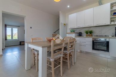 RAVENNA località CAMERLONA: Porzione di bifamiliare completamente ristrutturata nel 2023, ideale per chi cerca ampi spazi abitativi, comfort e indipendenza. L'abitazione, di circa 175 mq, si sviluppa su due livelli ed è caratterizzata da un ingresso indipendente che conduce direttamente in un ampio e luminoso soggiorno, perfetto per accogliere familiari e amici con ripostiglio molto comodo, da adibirlo a vano guardaroba. Nella zona giorno è presente la spaziosa cucina abitabile, dove si può pranzare in totale comodità e serenità con affaccio nel giardino di proprietà e dove si può ammirare un fantastico tramonto grazie alla presenza delle ampie vedute. Sempre al piano terra troviamo la prima delle tre camere da letto, tutte matrimoniali, il bagno ed un sottoscala dove è presente la lavanderia dell'immobile. Salendo al primo piano, la zona notte è composta dalle altre due camere da letto, quella matrimoniale padronale, con accesso ad un bellissimo balcone ed il terzo vano sottotetto adibita a terza camera da letto. Termina il piano il secondo bagno della casa, con box doccia, pensato per garantire la massima funzionalità di tutti i piani. Uno dei veri punti di forza di questa soluzione è il grande giardino vivibile, un angolo verde ideale per momenti di relax all'aperto o per organizzare cene estive sotto la tettoia. Non manca la praticità: c'è la possibilità di parcheggiare comodamente all'interno della proprietà. Questa casa è la scelta perfetta per chi desidera una soluzione pronta da abitare, moderna e accogliente, senza rinunciare alla privacy e agli spazi esterni. .