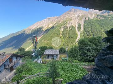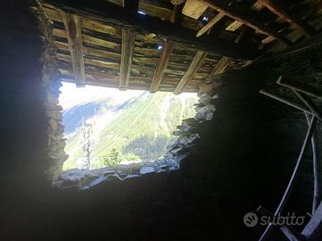 Il rustico è da ristrutturare ed è caratterizzato da elementi tipici valdostani e di montagna come la pietra e il legno e le famose aperture che regalano una vista mozzafiato.