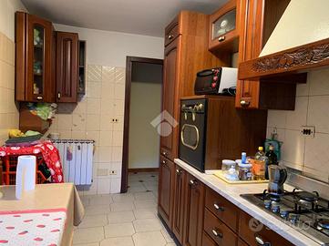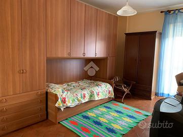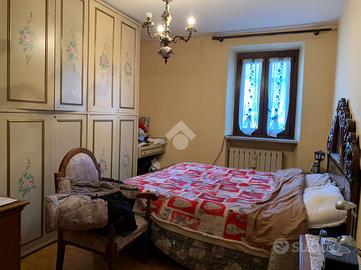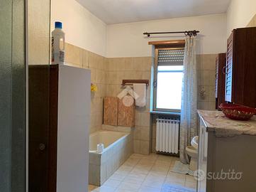 Al primo piano, il secondo alloggio: l'ingresso è direttamente sulla sala da pranzo separata dalla cucina abitabile e dal salotto. Le camere da letto matrimoniali sono due e il bagno è finestrato con vasca.