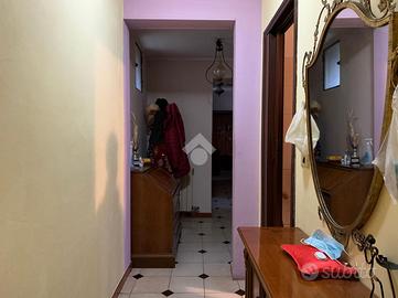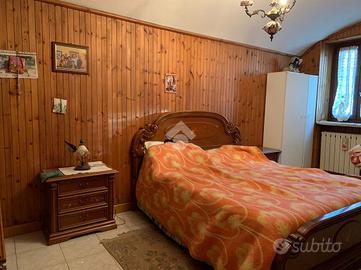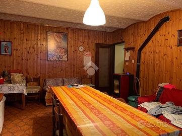 Al piano terra, il primo appartamento: il corridoio conduce a tutte le stanze della casa, la zona giorno con la sala da pranzo e la cucina e la zona notte con le due camere da letto e il bagno finestrato con vasca. L'alloggio è dotato di stufa a pellet.