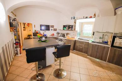 Nella parte bassa del paese, vicino ai principali servizi e alle scuole, soluzione semindipendente libera su tre lati. L'immobile è stato oggetto di ristrutturazione e più precisamente nel 2021 è stato rifatto il tetto con coibentazione, i box con costruzione antisismica e la facciata, nel 2020 è stato rifatto il bagno e sostituita la caldaia, nel 2016 è stato rifatto l'impianto elettrico con l'installazione della domotica e l'impianto idraulico. La soluzione si sviluppa su più livelli e il piano terra dispone di ingresso sulla cucina abitabile con ripostiglio utilizzabile come dispensa, soggiorno dotato di camino a legna e disimpegno che separa l'ampia camera matrimoniale con balcone alla francese e la sala da bagno caratterizzata da doccia a pavimento. Al primo piano si sviluppa la zona notte che si compone da camera matrimoniale di generosa metratura con balcone, cameretta, bagno finestrato dotato di doccia e un locale riscaldato caratterizzato da soffitto con travi a vista in legno e provvisto di velux. Al piano seminterrato è presente un locale rifinito ad uso tavernetta. Nella parte antistante si estende il cortile privato avente accesso con passo carraio e cancellino elettrificati dove trovano posto due box auto. L'area esterna si completa di giardino privato. Gli infissi sono in pvc con vetrocamera e muniti di zanzariere. L'immobile è accessoriato di antifurto volumetrico e perimetrale e telecamere.