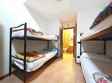 Al piano terra appena entrati un atrio di ingresso di ben 28 mq ci accoglie e ci accompagna a due stanze di circa 17 mq l'una che ospitano vari letti a castello. Completa il piano due bagni.