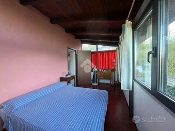 Il primo piano è accessibile sia internamente tramite una scala a chiocciola, sia esternamente dal cortile tramite scala indipendente. Qui si sviluppa la zona notte, composta da una camera matrimoniale, una cameretta, un secondo bagno e una veranda coperta regolarmente accatastata, ideale come studio, zona relax o spazio aggiuntivo versatile.