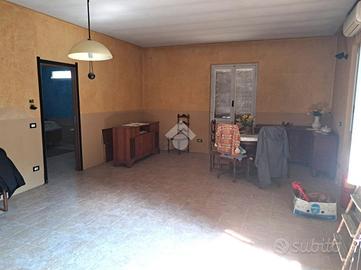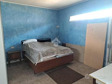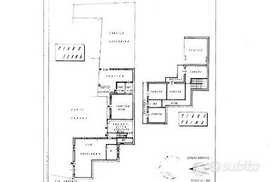 La 1° soluzione, è semi-indipendente, composta da: al piano terra da aggiornare, ingresso, ampio soggiorno, cucina semiabitabile, camera da letto matrimoniale e bagno finestrato. Una scala interna ci conduce al piano superiore dove sono presenti: 4 camere e un bagno. Attualmente il 1° piano è a rustico e completamente da ultimare. Completano la soluzione la presenza di un box auto, 3 locali cantina, di cui uno ampio, un grande cortile esclusivo e due portici.