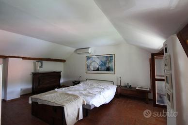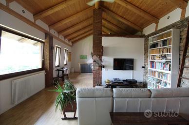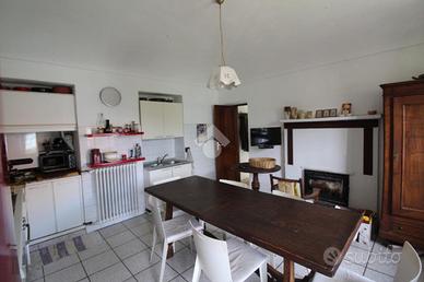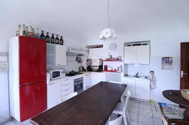 Sita nella tranquilla località Salomone, questa soluzione semindipendente, completamente ristrutturata nel 2017, è disposta su tre livelli. L'accesso alla proprietà è in un cortile comune, dal quale si accede al piano terreno, composto da cucina abitabile con camino, tavernetta piastrellata, box auto e disimpegno. Una singola rampa di scale conduce al piano primo, composto da salone di generosa metratura con ampia superficie vetrata, camera da letto padronale e bagno con vasca. Al piano mansardato infine è presente una seconda camera matrimoniale. La proprietà è completata da una porzione di cortile privato, una tettoia con fienile, locali accessori e cantina.