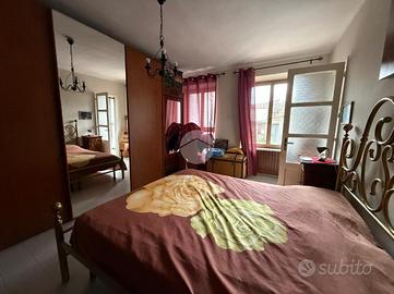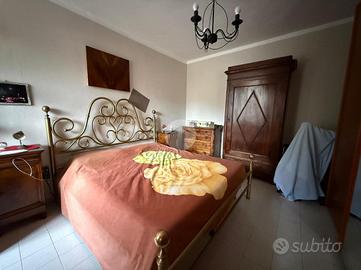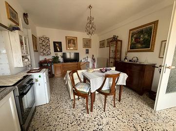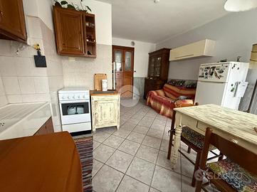 Tramite il vano scala esterno si accede al piano primo composto da due appartamenti e un locale deposito. l'appartamento a destra è allo stato originale composto da ingresso su soggiorno con cucina, camera e bagno con riscaldamento tramite stufa. il secondo appartamento è composto da ingresso su soggiorno, cucinino, bagno e camera.