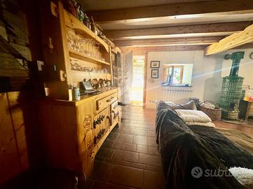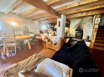 La casa conserva elementi originali d'epoca, come i pavimenti e le travi a vista che raccontano la storia e il carattere della costruzione.