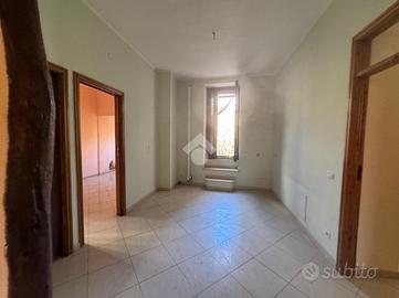 Una scala conduce alla zona abitativa principale, già rifinita e pronta per essere vissuta. Qui troviamo un luminoso soggiorno-cucina con accesso diretto al balcone, ideale per momenti di relax all'aperto. La zona notte è composta da due camere da letto, di cui una con accesso a un pratico ripostiglio perfetto da adibire a cabina armadio, entrambe dotate di finestra. Completa il piano un bagno con punto luce naturale.