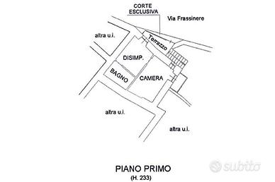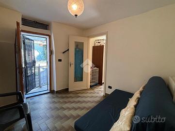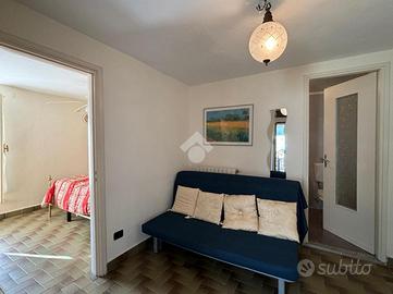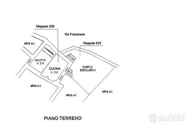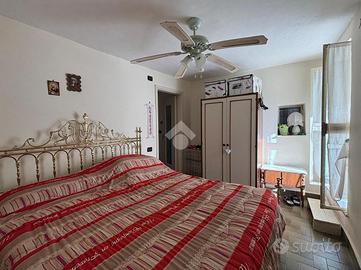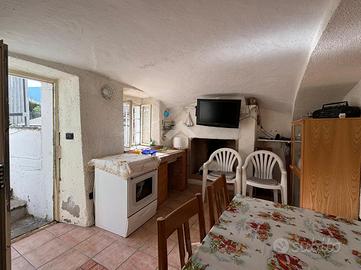 L'ingresso è al piano terra nella zona giorno composta da una cucina abitabile ed un soggiorno; tramite una scala in muratura si accede al piano superiore dove troviamo un disimpegno che divide la camera matrimoniale con l'affaccio sul balcone dal bagno con il box doccia.