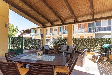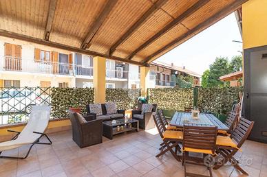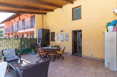 L'ingresso avviene tramite cortile terrazzato privato e coperto da tettoia.