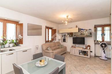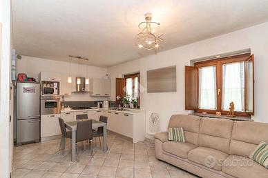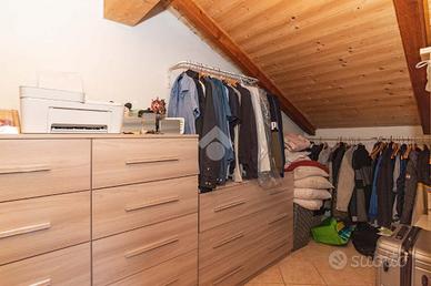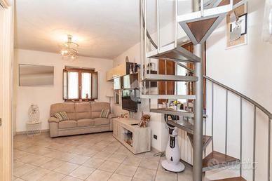 Tramite il portoncino blindato, si accede alla comoda zona giorno con cucina a vista e al bagno. Al primo piano, collegato da scala interna, ampia camera da letto matrimoniale con cabina armadio.