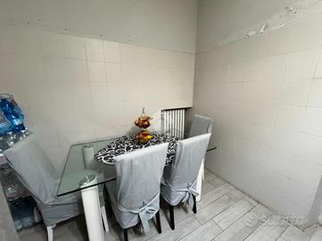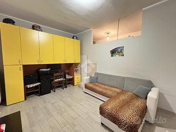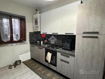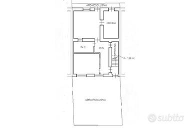 Il piano terra è composto dal soggiorno, dalla cucina abitabile, dal bagno di servizio in fase di ristrutturazione e dalla camera/salotto.