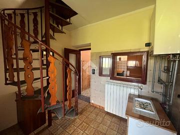 L'ingresso al piano terra, tramite il portoncino, è sul soggiorno con cucinino che conduce al disimpegno e al bagno con vasca.