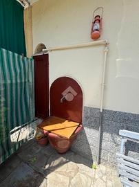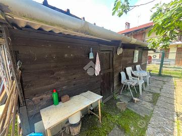 Adiacente alla casa, c'è una piccola area cortilizia e di fronte, distaccato, si trova un appezzamento di giardino privato adibito ad orto. E' presente anche un basso fabbricato adibito a magazzino/ locale deposito.