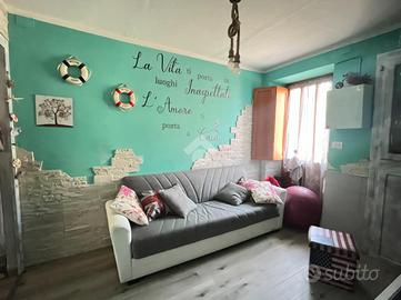 L'ingresso, tramite il portoncino, è sulla cucina abitabile. Sempre al piano, locale lavanderia, bagno con doccia e una camera adibita attualmente a soggiorno.