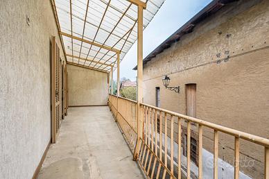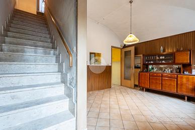 Questa residenza si sviluppa su due livelli abitativi con dieci locali ampi e luminosi, permettendo una personalizzazione secondo le proprie esigenze; nasce come abitazione singola, ma l'immobile offre la possibilità di più suddivisioni, grazie ai tre accessi indipendenti e all'importante metratura. Completano la proprietà l'area esterna, un grande cortile coperto e un sottotetto grezzo. Al piano interrato è presente una suggestiva cantina con mattoni a vista e, al suo interno, un antico pozzo ancora attivo; è un elemento raro e prezioso, che oltre al valore storico offre interessanti possibilità di utilizzo.