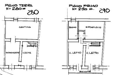 Tramite scala interna, da rivedere, si accede al primo piano composto da due camere da letto, locale deposito e bagno.
