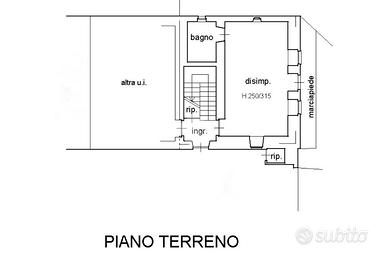 Il piano terra è composto dal box auto ampio di 44 mq e, sempre al piano, è presente una stanza da adibire a sala o taverna con bagno di servizio.