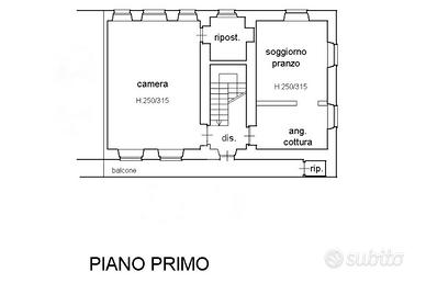 Tramite scala interna, si accede al primo piano composto dalla cucina, dal soggiorno e dalle due camere da letto.