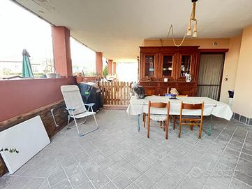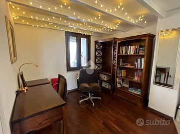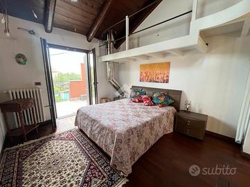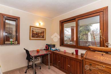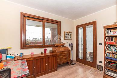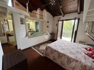 CASA SEMINDIPENDENTE CON GIARDINO PRIVATO.In prossimità del Velodromo, del Centro Commerciale 'Le Borgate', della chiesa, delle scuole e del Comune, casa semindipendente, disposta su tre livelli con porticato e giardino privato di 540 mq circa. L'immobile si presenta in buone condizioni interne. L'ingresso, tramite portoncino blindato nuovo, è sul disimpegno da cui si accede al cucinotto abitabile con finestra. Il soggiorno è doppio, luminoso, con volta a mattoni a vista, provvisto di camino a legna, e affaccio sul giardino. Sempre nello stesso piano troviamo il bagno di servizio e uno studio. Tramite scala interna, rifinita con pedate in legno, si accede al piano primo composto da camera da letto matrimoniale, che affaccia sul balcone , disimpegno e dal secondo bagno, con vasca idromassaggio e doccia. Proseguendo con la stessa scala, si accede al secondo piano, dove è stato realizzato un soppalco a vista che può essere adibito a seconda camera. L'immobile è stao oggetto di interventi che hanno permesso una importante riqualificaizone energetica (tetto rifatto e coibentato, installazione caldaia con pompa di calore ibrida, pannelli solari per la produzione di acqua calda sanitaria, pannelli fotovoltaici, infissi in PVC con camera doppia, tenda da sole ombreggiante elettrica, cappotto termico, colonnina di ricarica e restauro facciata). La casa è ideale per coppia, o famiglia composta da tre componenti. Non sono presenti parti comuni. La zona è tranquilla ma nello stesso tempo comoda. Il giardino di proprietà è ampio e può essere adibito anche ad orto, sono presenti alberi da frutta come noce, melo, fico e susino. Completano la proprietà un posto auto coperto con colonnina.
