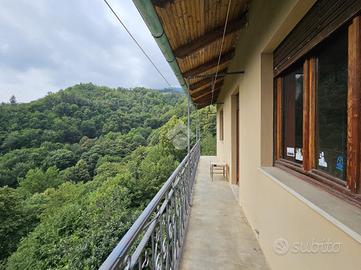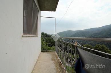In borgata, a 3,5 km dal centro, proponiamo casa semi-indipendente disposta su due livelli con sfogo esterno privato. Al piano semi- interrato le cantine e un ampio locale adibito ad uso sgombero. Al piano terra, si sviluppa la parte abitativa composta da ingresso sulla cucina abitabile, il disimpegno, il bagno completo di vasca e finestra e le due camere da letto, aventi sfogo sul balcone. L'impianto di riscaldamento é alimentato da una stufa a pellet e legna. Di pertinenza sono compresi un locale ad uso autorimessa fuori terra di 28 mq e terreni boschivi . La soluzione viene venduta completa di arredamento e offre un'ottima vista sulla valle.