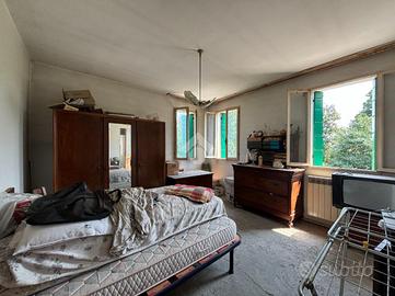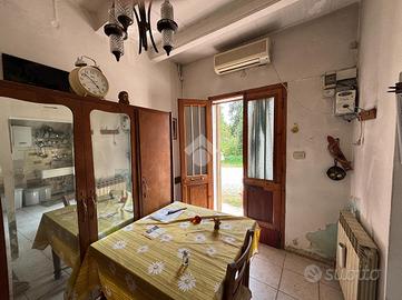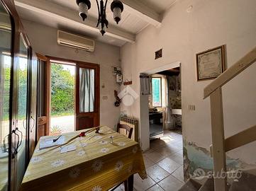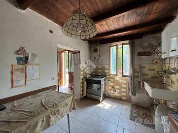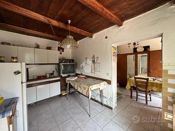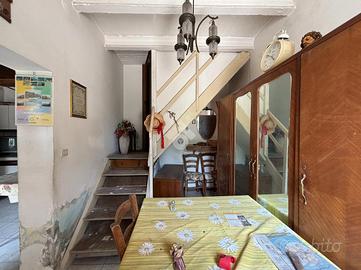 L'immobile si sviluppa su due livelli: al piano terra in ingresso troviamo il disimpegno che separa la cucina dal soggiorno, che era utilizzato come camera, ed il bagno finestrato con doccia. Al piano primo troviamo poi una camera, un bagno con vasca e un'altra stanza, travata a vista, utilizzabile come camera. A servizio del piano primo troviamo inoltre un poggiolo.