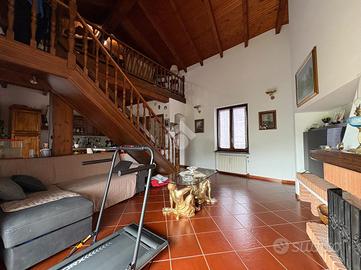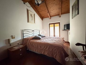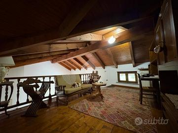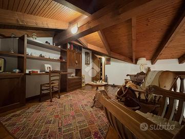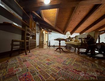 Accedendo tramite una scala interna, il piano mansardato presenta una zona da adibire come studio ed un ulteriore cameretta con travi a vista
