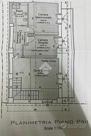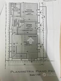 L'ingresso, dal piano terra, tramite scala interna conduce al primo piano dove si sviluppa tutta la unità abitativa. La sua composizione interna sarà di soggiorno con cucina a vista, disimpegno, bagno e due , camera.